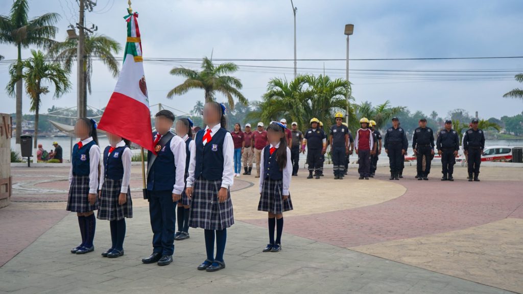 Participaron estudiantes de la escuela primaria Ignacio Zaragoza, quienes llevaron a cabo los honores al lábaro patrio, dirigieron el Juramento a la Bandera y entonaron las notas de nuestro Himno Nacional.