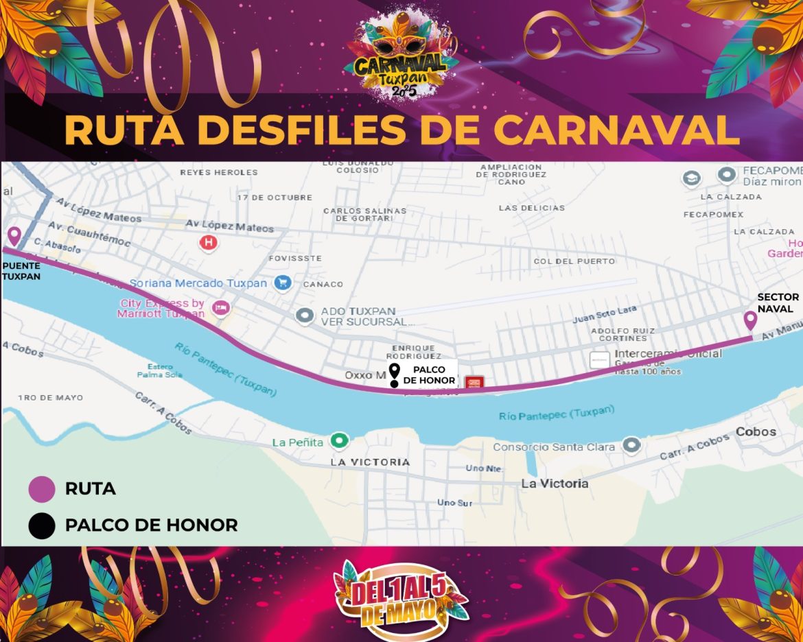 Tuxpan, Ver., 28 de abril de 2025.- El alcalde Dr. Jesús Fomperoza Torres y el Comité de Carnaval Tuxpan 2025 informan que, debido a los trabajos que realiza CAEV y SIOP en el bulevar, a la altura de la calle Morelos, se tomó la determinación de cambiar la ruta de los paseos por seguridad de participantes y asistentes.
