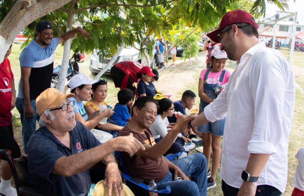 En este domingo familiar, saludó a futbolistas que participaron en un cuadrangular de inter-empresas en el campo Reyes Heroles. En la comunidad Laja del Tubo hizo lo propio con beisbolistas de dicha localidad y de Banco De Calichar.